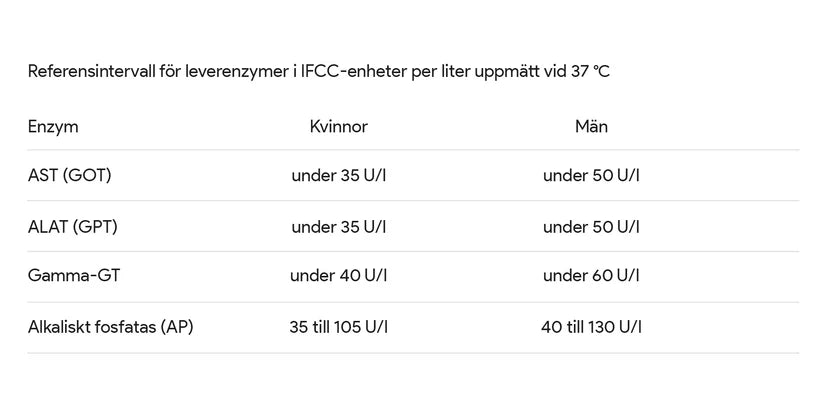 Hos kvinnor måste värdet absolut vara under 40 U/l.