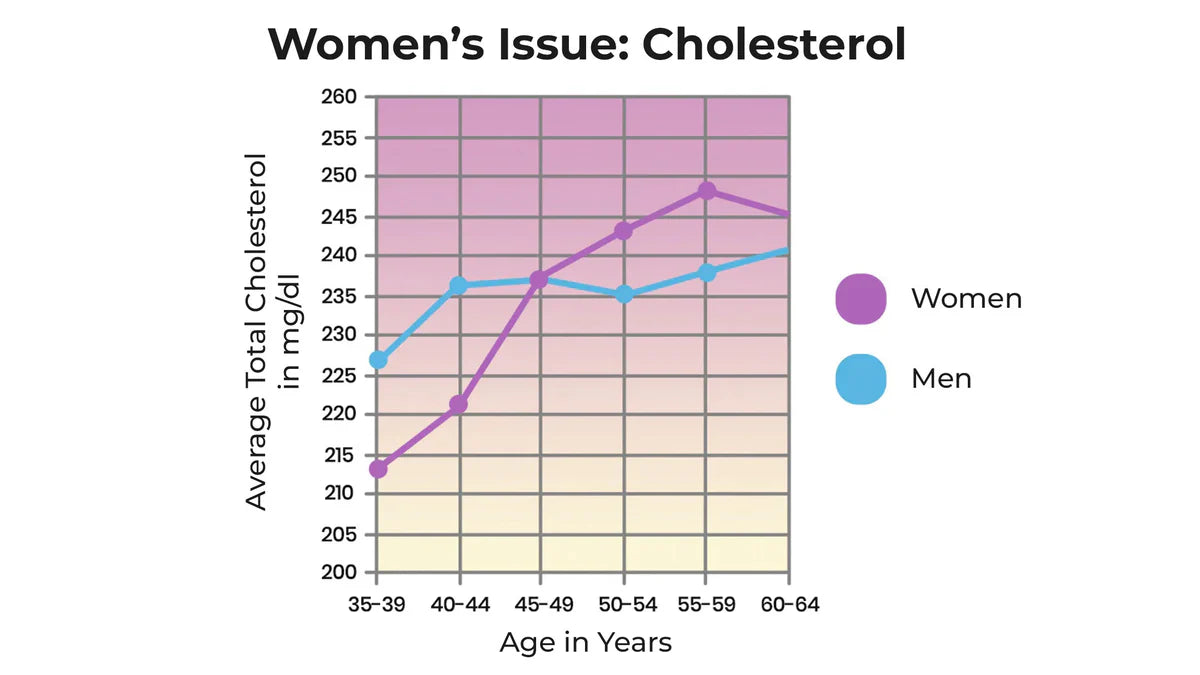 During this period, the relationship is reversed and cholesterol levels in women increase significantly.