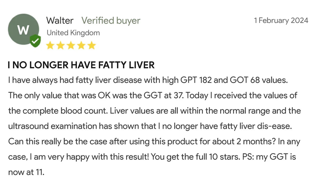 The result: a healthy liver and better cholesterol, AST, ALT and gamma-GT levels.